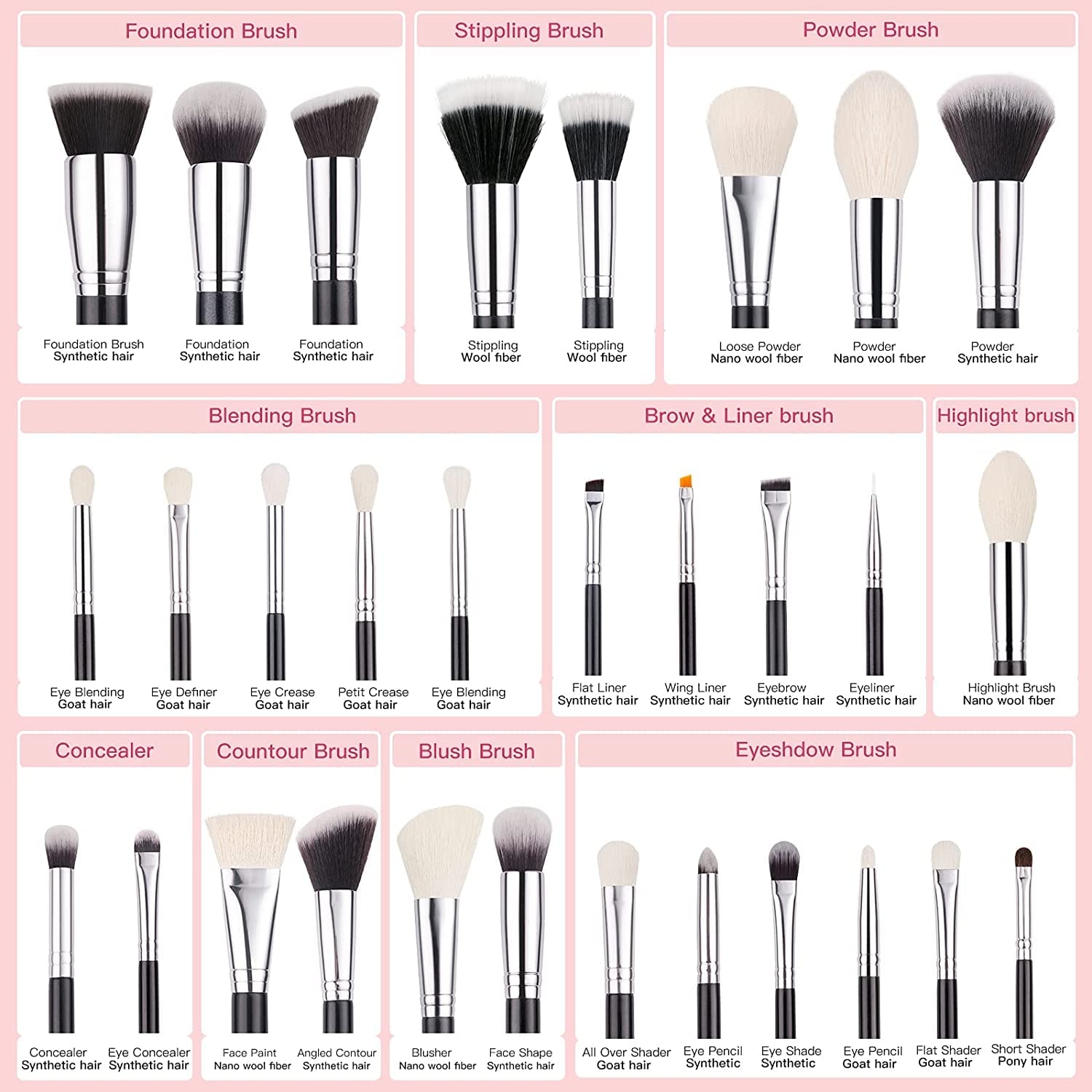 Goat Hair are the best for eye blending makeup, they pick up and absorb pigment along with skin' s oils.
